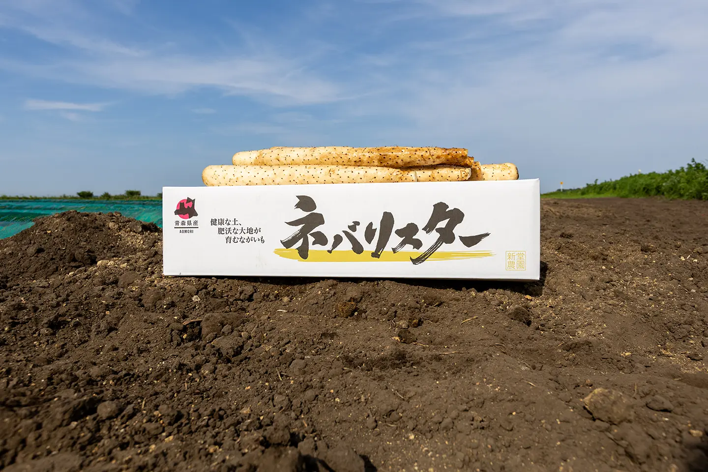 有機肥料を初期の土づくりで使用している為、通常よりも栽培期間を長くゆっくり肥料を吸わせることで、味わい豊かな長芋にしあげます。
